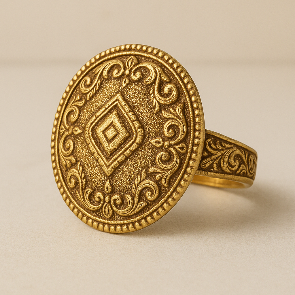 A bold, antique-style women’s ring with intricate patterns. Designed with fine detailing for a premium, royal look.